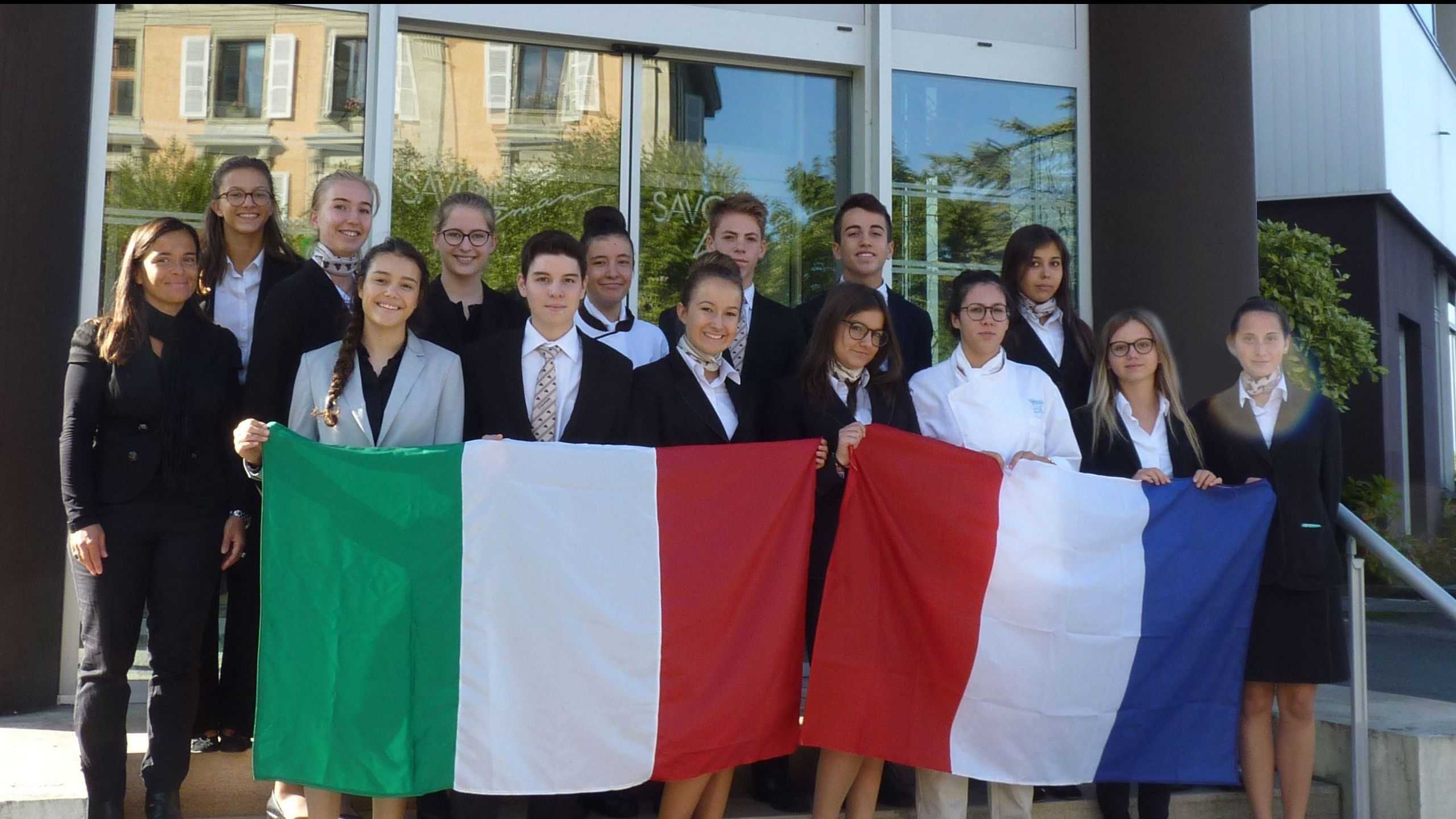 L’échange avec l’école hôtelière de Châtillon en Val d’Aoste concerne 15 élèves du cycle terminal de la filière STHR. Il se déroule chaque année, depuis 2013, en 2 étapes : accueil des élèves italiens en France et accueil des élèves français en Italie. Pendant leur séjour les élèves participent à des TP, à des cours d’enseignement général, à des sorties culturelles (ONU à Genève, Évian, Yvoire, Annecy, Aoste, le parc du Grand Paradis, etc.) et de découverte du milieu professionnel (Royal et Hilton à Évian, Kempinski à Genève, Notre maison à Cogne, Bilia hôtel à Saint Vincent, viticulteurs, producteurs de produits locaux, etc.) et collaborent pour la création d’un dîner « brigade mixte » où les élèves français et italiens interviennent ensemble en cuisine et en salle guidés par leurs professeurs respectifs.